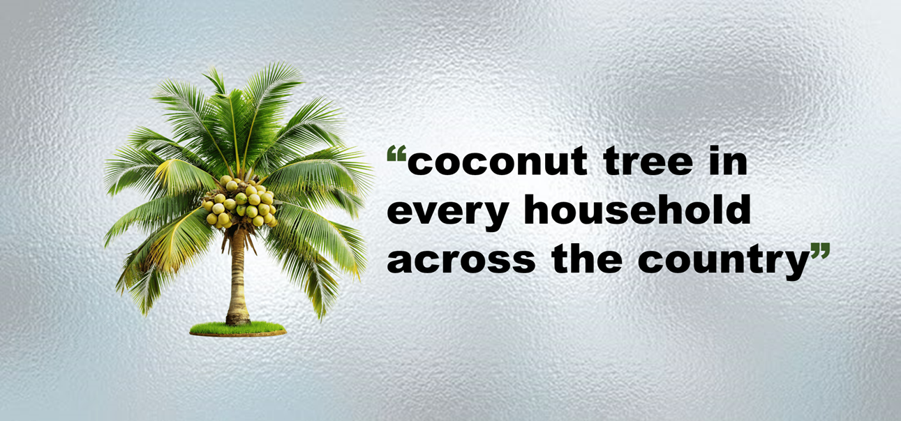 To encourage every family to grow at least one coconut tree, promoting food security, economic value, and ecological balance.